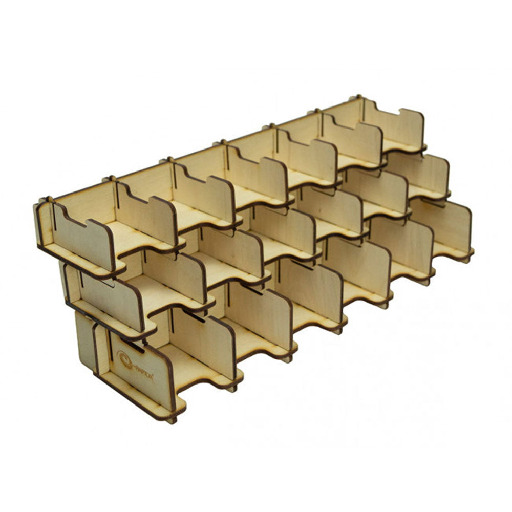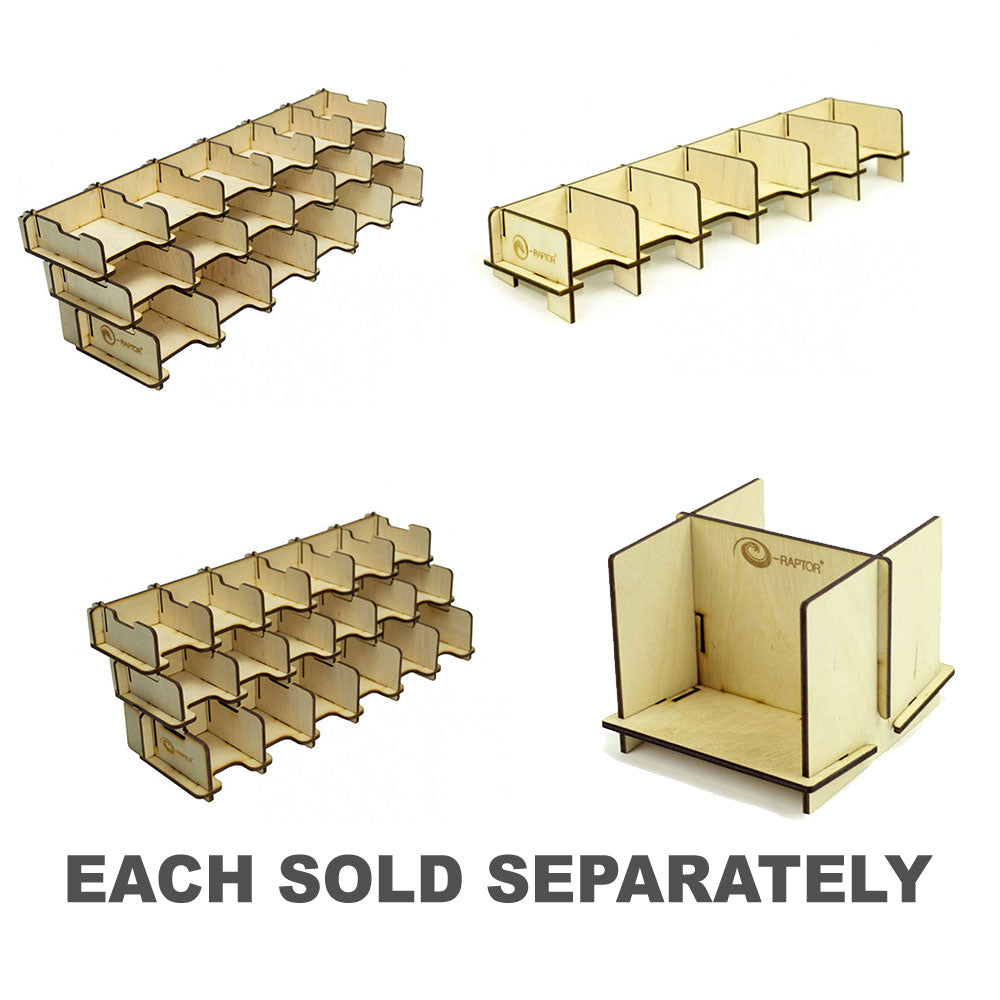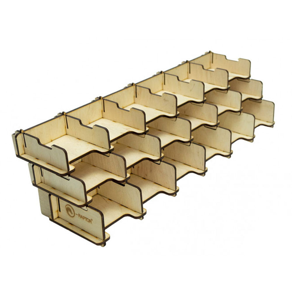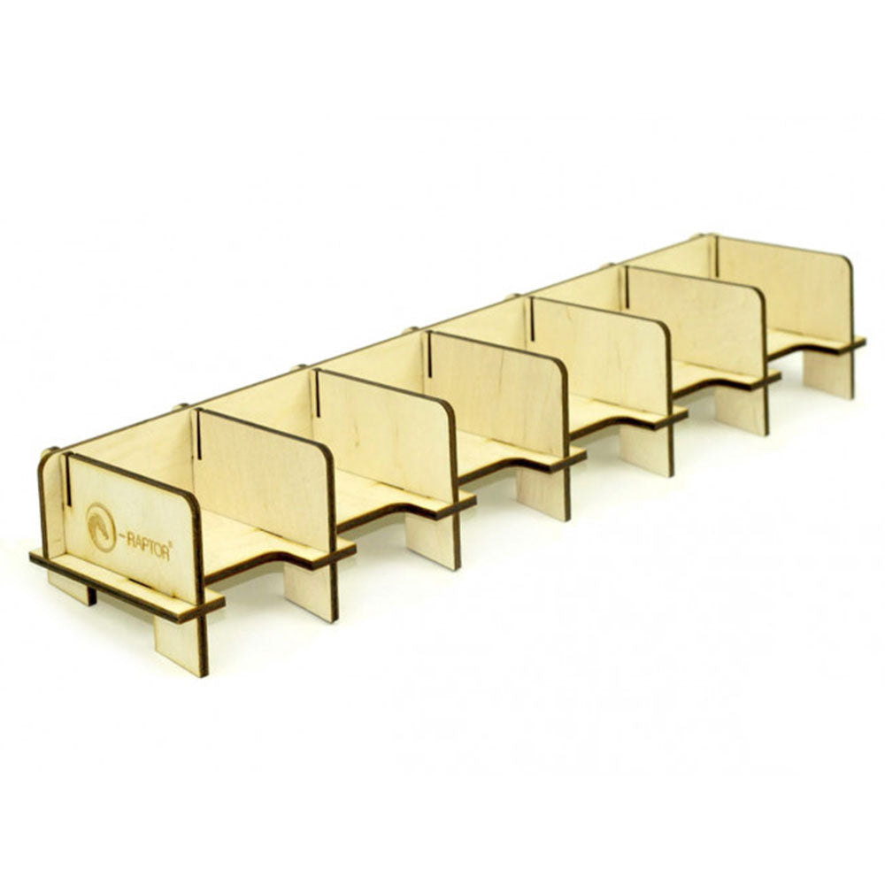 Houten alternatief voor onze Plexiglass -kaarthouder E -Raptor -kaarthouder - 2L Solid. Gemakkelijk te monteren vóór gameplay en demonteren erna. Past op ongeveer 200 kaarten.