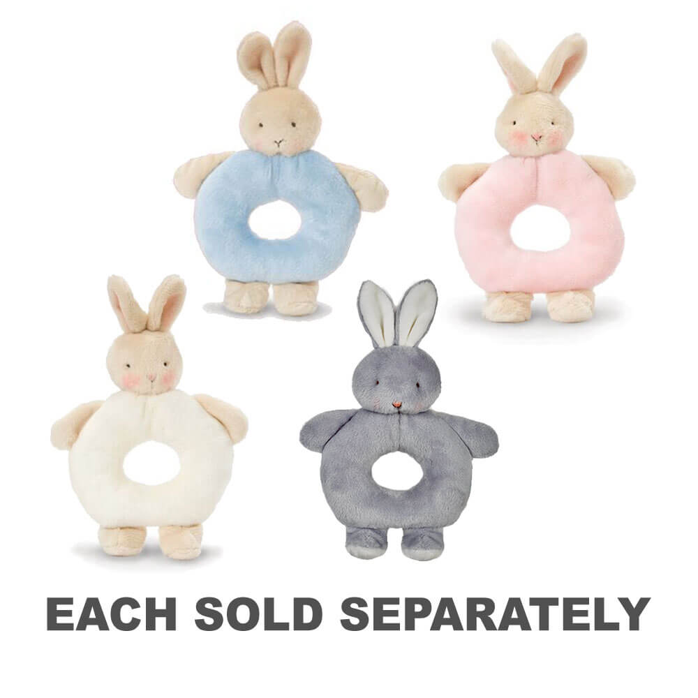 Deze prachtig vervaardigde 15 cm 'Grady' Bunny Ring Rammle is een zachte vriend en rammelaar in één. Gemaakt van de zachtste babyveilige pluche stoffen in een mooie tint zilverachtig grijs en met een grote dikke ringvorm in de perfecte maat voor kleine handen om te grijpen, bevat deze ringrammelaar ook een zacht rammelend geluid om te genieten en te boeien.