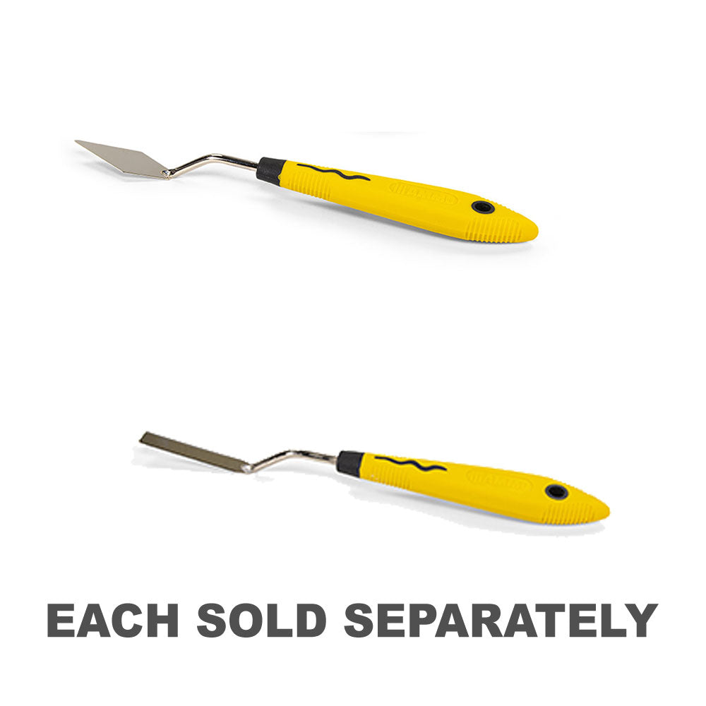 Hoogwaardige roestvrijstalen paletmessen met flexibele messen en ergonomische rubbergreep voor eenvoudige grip en comfort. Ideaal voor vignet- en diorama -constructie, het aanbrengen en verspreiden van texturen, sprenkeling en distribueren van pigmenten, evenals voor beeldhouwwerk en snijwerk.