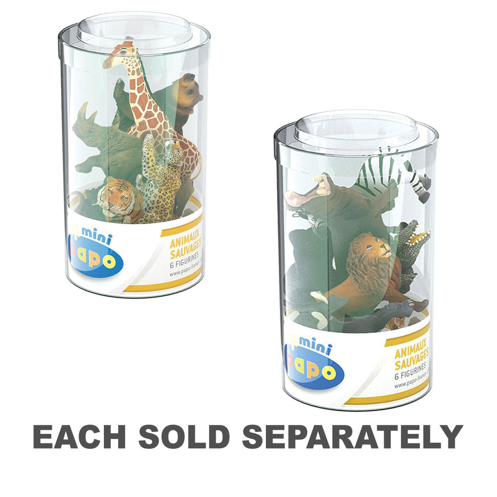 • Verken een andere set van 6 miniatuur dierenbeeldjes met de Papo Mini plus wilde beeldjes Set 2, met extra soorten in het wild.