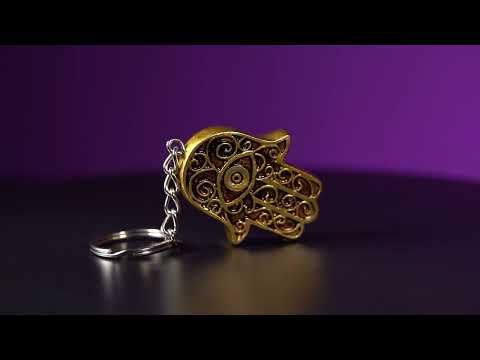 Mystisk håndmalet Hamsa-håndnøgle. Har kompliceret Hamsa -design med en metallisk finish på en traditionel nøglering.