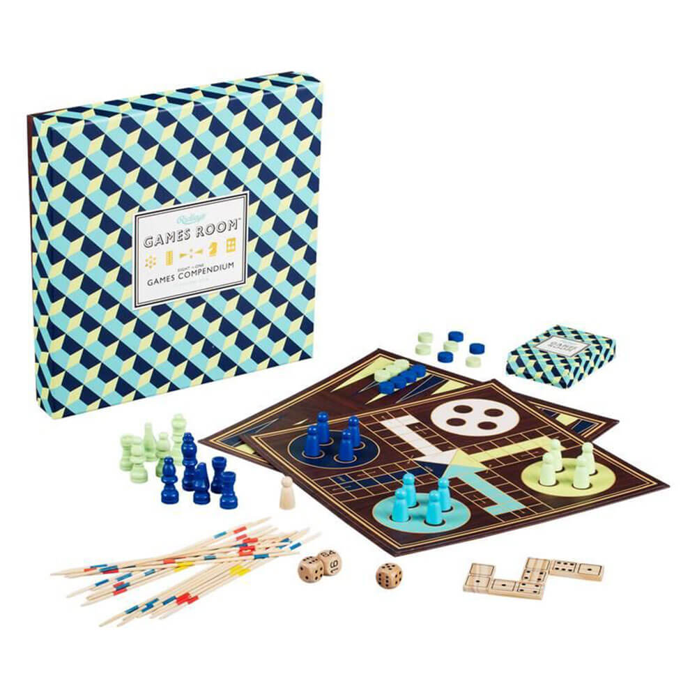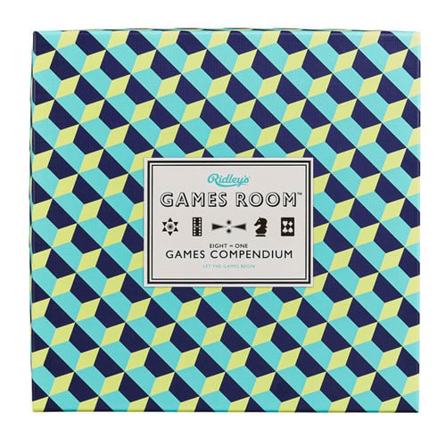 Hav en klassisk spil aften med dette spilkompendium fra Ridleys spil! Otte-i-en-spilkompendium. Pakket i geometrisk trykkasse. Indeholder backgammon, skak, kinesiske brikker, dominoer, kladder/brikker, ludo, pick-up pinde, spillekort og instruktioner.