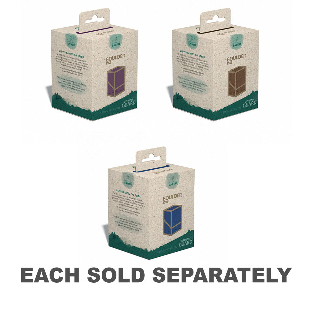 Udviklet og produceret i Tyskland består denne praktiske og solide Boulder 100+ med super-let åbning af 97% vedvarende ressourcer med en FSC-certificeret græspapiremballage. Deck-sagen er genanvendelig og holder op til 100 dobbeltærmet eller 120 enkelt-ærmet kort, når du bruger ultimative vagtærmer.