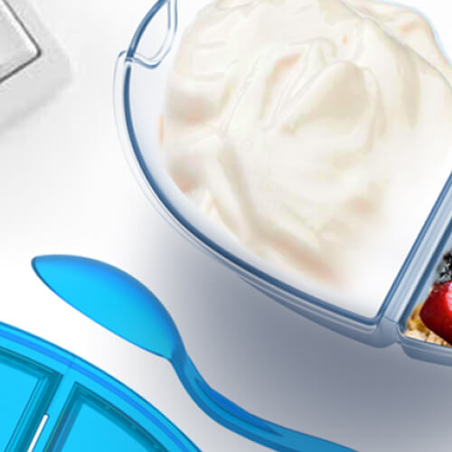 • Sæt almindelig yoghurt på den ene side og fyld den anden med frugt, bær eller nødder