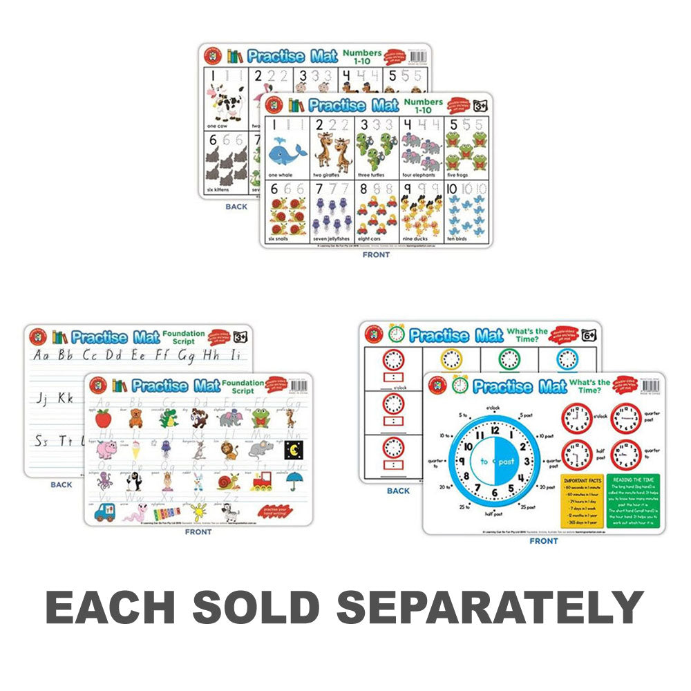 Kinder werden gerne ihre Alphabetisierung und Rechenfähigkeiten mit diesen ansprechenden und farbenfrohen Übungsmatten praktizieren. Wichtig ist, dass dies das einzige Produkt auf dem Markt ist, das auf den Australien -Lehrplan zugeschnitten ist. Einzigartig für dieses Produkt; Die Matte kann mit einem trockenen Löschstift verwendet werden, sodass sie für immer wieder sauber gewischt werden kann. Ermutigt werden Kinder durch wiederholtes Spielen bald sowohl Handschreib- als auch Zahlenfähigkeiten auf den Übungsmatten beherrschen.