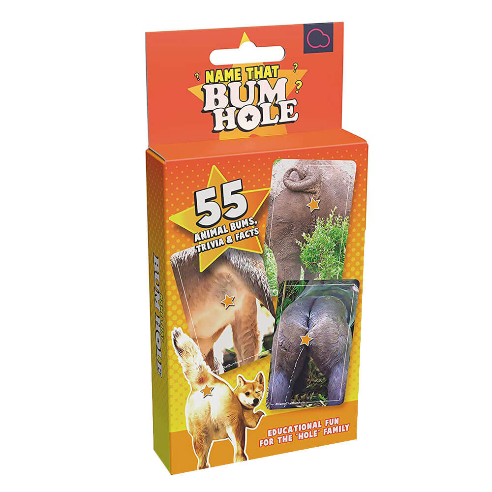 • ANIMAL GAMES DON'T GET ANY MORE EDUCATIONAL: Name That Bumhole is a hilarious, tongue-in-cheek animal quiz. It's a collection of bums, trivia and fun facts relating to all walks (and crawls, slithers, flies and swims) of life, from domestic dogs and cats to wild wolves, turkeys and turtles. How much do you know about the lesser spotted part of the animal anatomy?