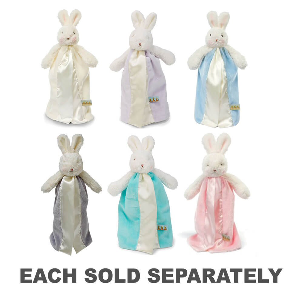 Perfect for home or on-the-go, this beautifully crafted 28cm 'Grady' Bunny Bye Bye Buddy is a plush toy and comfort blanket in one. Featuring the softest baby-safe plush fabrics in a lovely shade of silvery grey, this Bye Bye Buddy also includes a handy loop which easily attaches to baby's cot, pram or car seat for maximum play and comfort value. An exquisite split blanket complete with satin trim and lining makes this an extra-special security blanket for your little one to love.