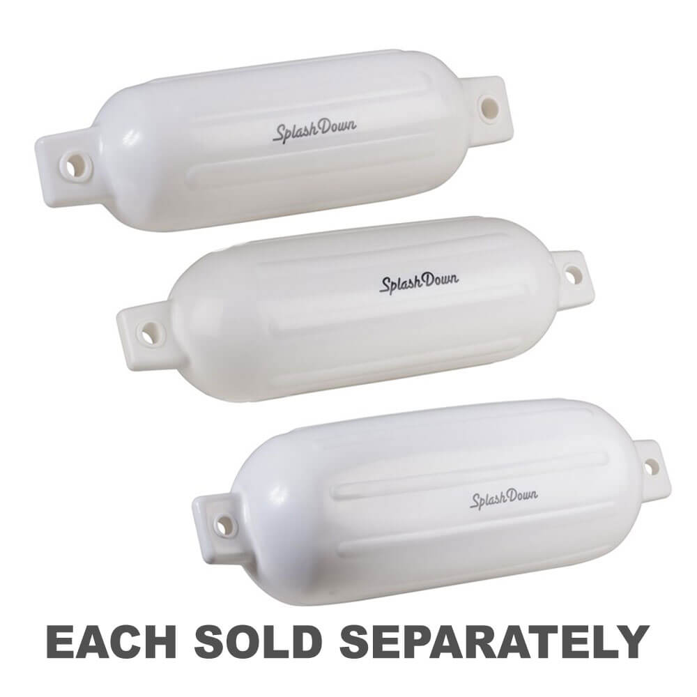 Each fender has a large eyelet at each end. (In the USA and Canada, fenders are generally tied festoon-like, rather than vertically, further preventing roll). 4 sizes are available, all white in colour.