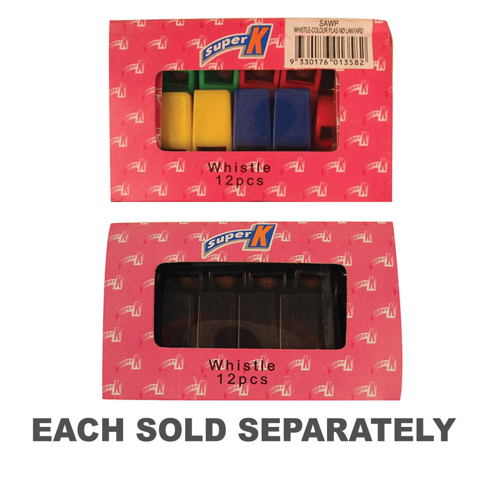 COLOUR WHISTLE NO LANYARD - PLASTIC - BOX OF 12