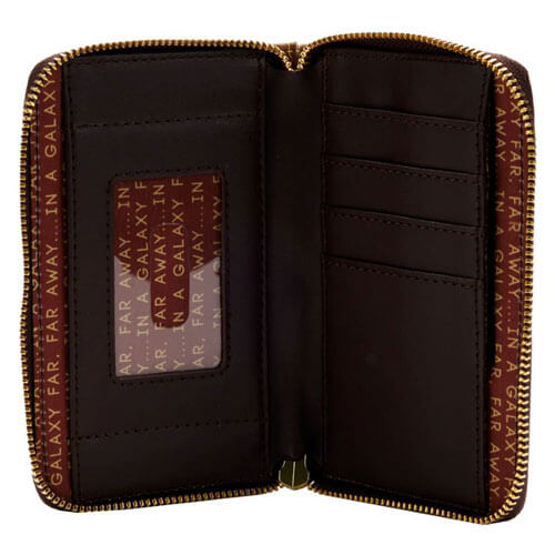 - The Loungefly Star Wars Lands Jakku Zip Around Wallet is made of vegan leather (polyurethane).Wallet zips closed with sturdy metal hardware and features printed details.Take note of the coordinating inside lining.