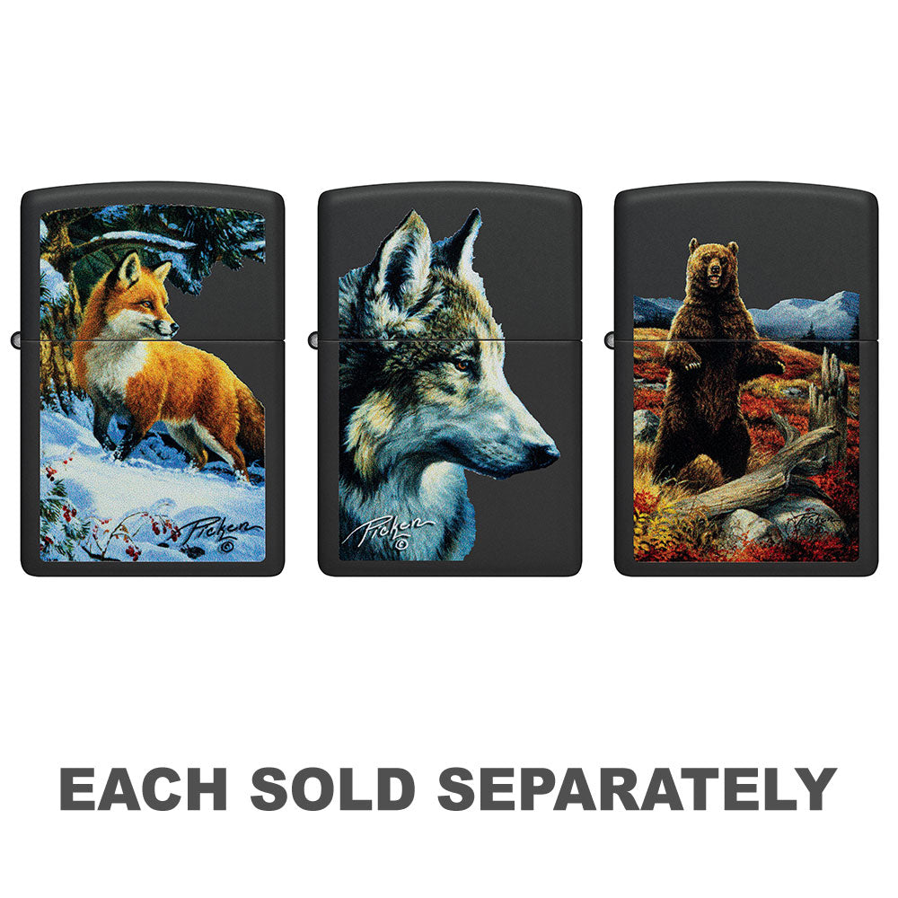 Zippo Linda Picken Wolf Lighter is windproof lighter with distinctive Zippo "click". All-metal construction; windproof design works virtually anywhere. Comes packaged in a gift box. For optimal performance, fill with Zippo lighter fuel.