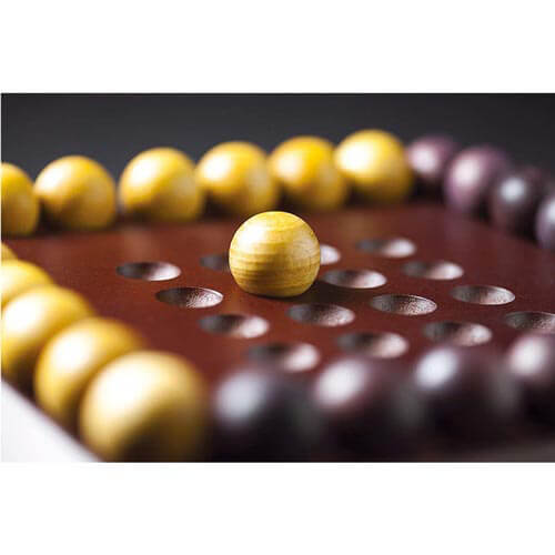 Cada jugador recibe quince bolas, ya sea ligera u oscura, y se turnan para colocarlas en un tablero de juego que tiene dieciséis hendiduras en una cuadrícula de 4x4. Una vez que se han colocado cuatro bolas una al lado de la otra en un cuadrado, se puede colocar una pelota encima de ellas. Esto continúa hasta que se alcanza el cuarto nivel de la pirámide y se coloca la última bola.