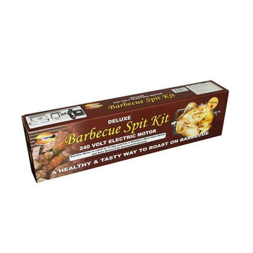 Kit de salpicaduras de barbacoa de lujo. El motor eléctrico tiene una clasificación de 12.5 kg y tiene un escudo de calor de acero inoxidable y un reverso automático para la protección contra sobrecarga. Se adapta a la mayoría de las barbacoas con capucha de 3 a 6 quemadores