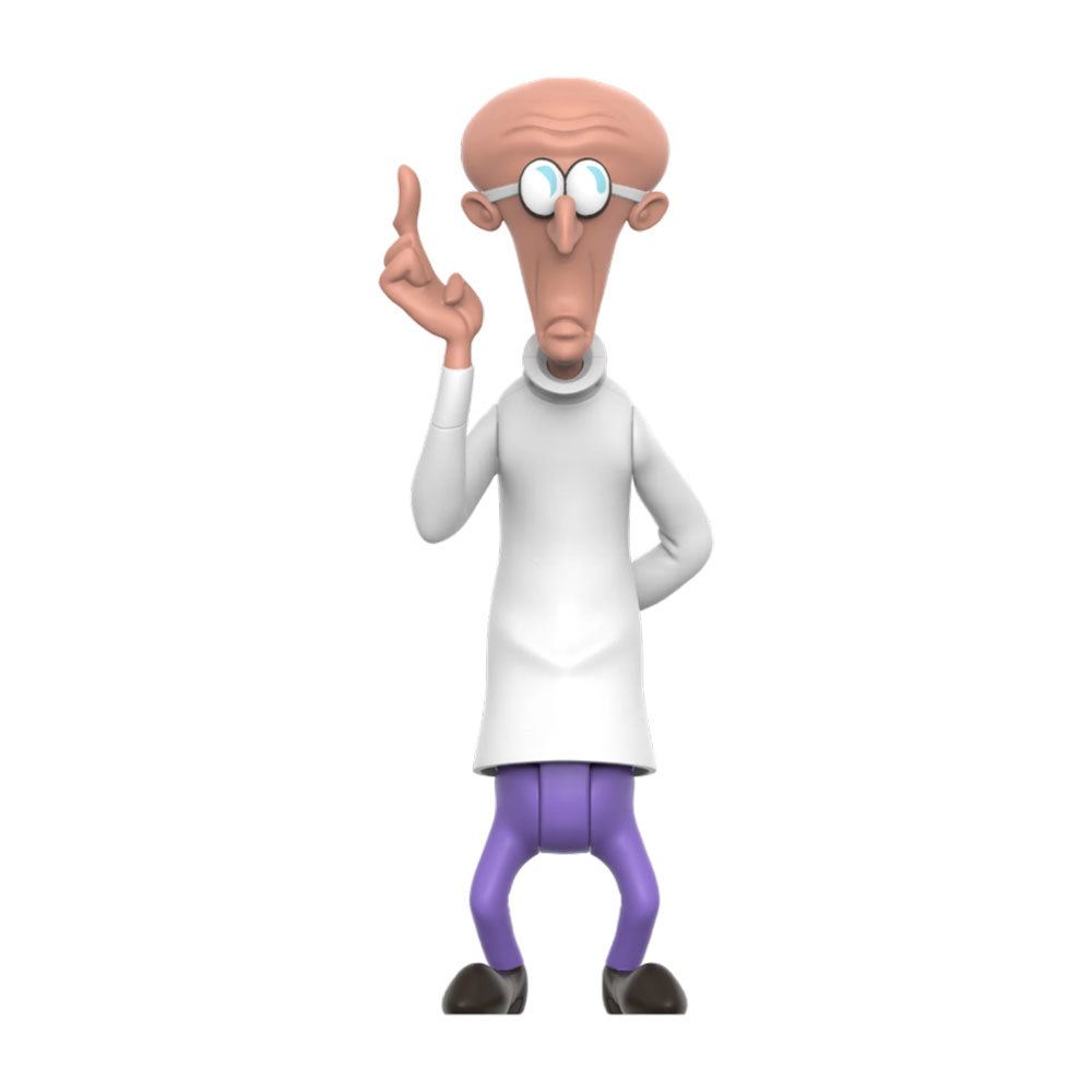 Deze 3,75 "Schaal gearticuleerde Animaniacs-reactiefiguur van Dr. Scratchansniff bevat de belegerde arts duidelijk in zijn nu follikelvrije hoofd.