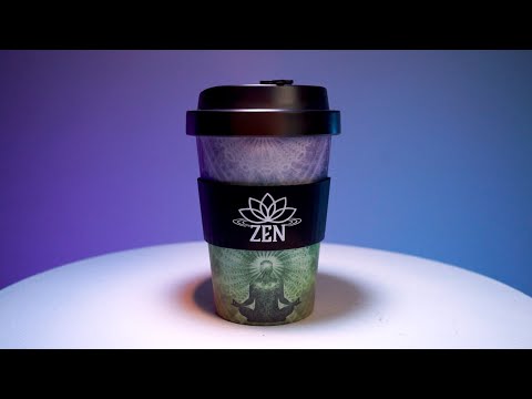 - Bijpassende zwarte anti-spill-deksel en beschermende siliconenband met witte 'Zen' & Lotus-symbool.