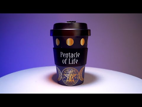- Bijpassende zwarte anti-spill-deksel en beschermende siliconenband met 'Pentacle of Life' in een opvallend wit lettertype.