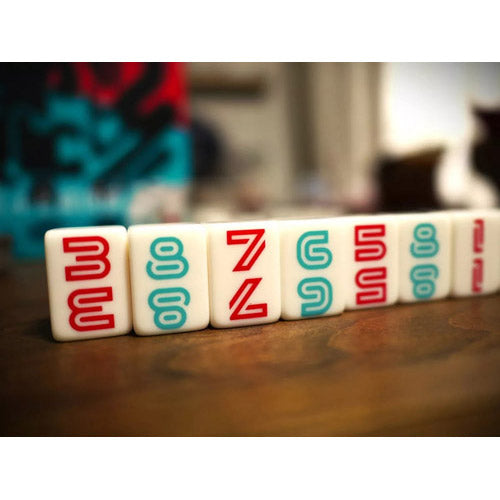 The game contains 38 tiles: 36 numbered tiles with one 1, two 2s, etc. up to eight 8s, along with a tiger and a dragon. Shuffle the tiles face down, then each player takes tiles based on the player count, with the round's starting player taking one additional tile. With four players, for example, the starting player draw ten tiles and all other players nine. At least one tile will remain out of play.