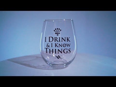 - L'autocollant noir lit «Je bois et je sais des choses» avec des symboles royaux.