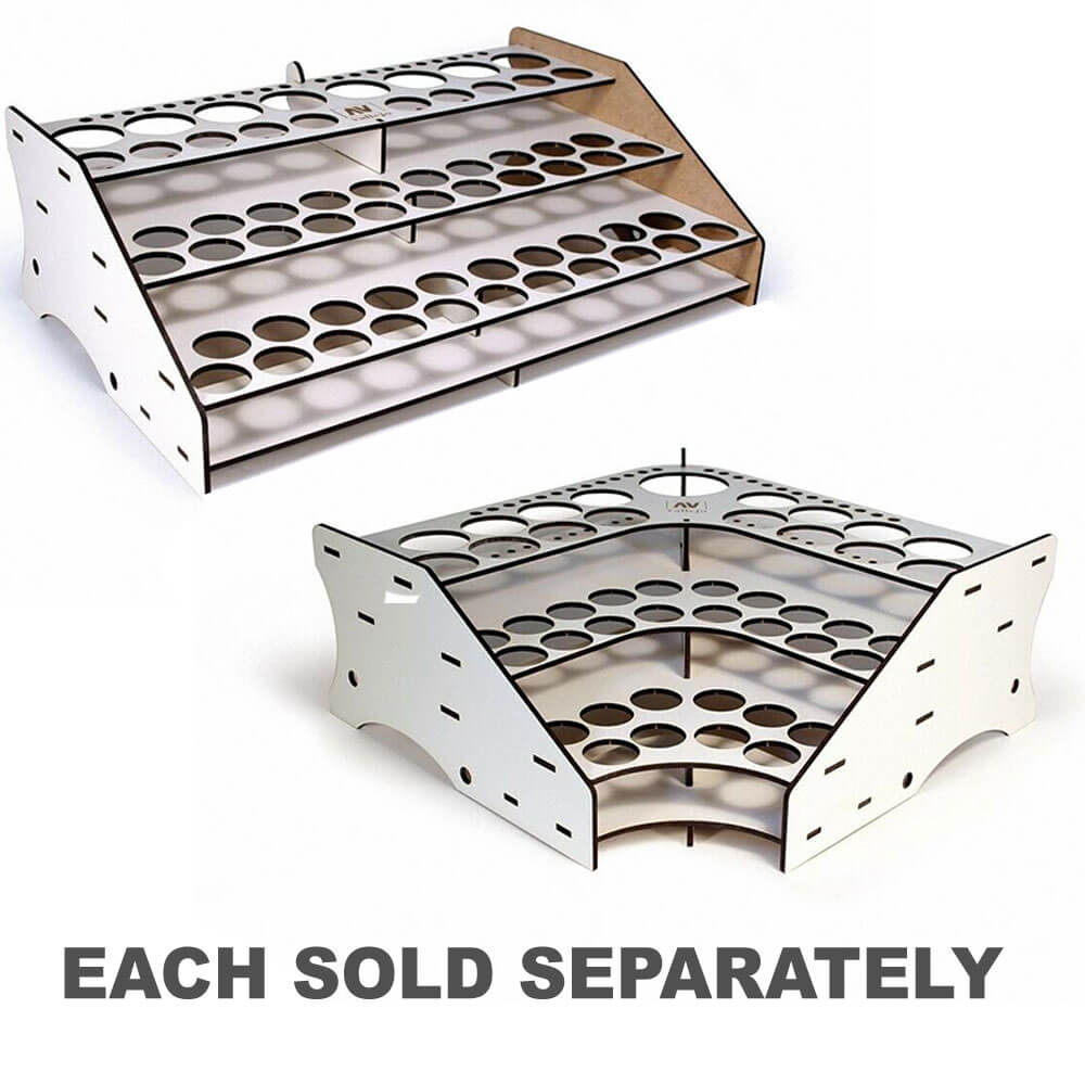 Stand de peinture du modèle avant: La solution parfaite pour stocker les couleurs de Vallejo. Ce modèle a un espace pour 52 bouteilles de couleurs Vallejo en taille de 17 ml, ainsi que 8 bouteilles de 35 ml / 60 ml et 22 pinceaux. Assemblage facile, ne nécessite pas de colle.
