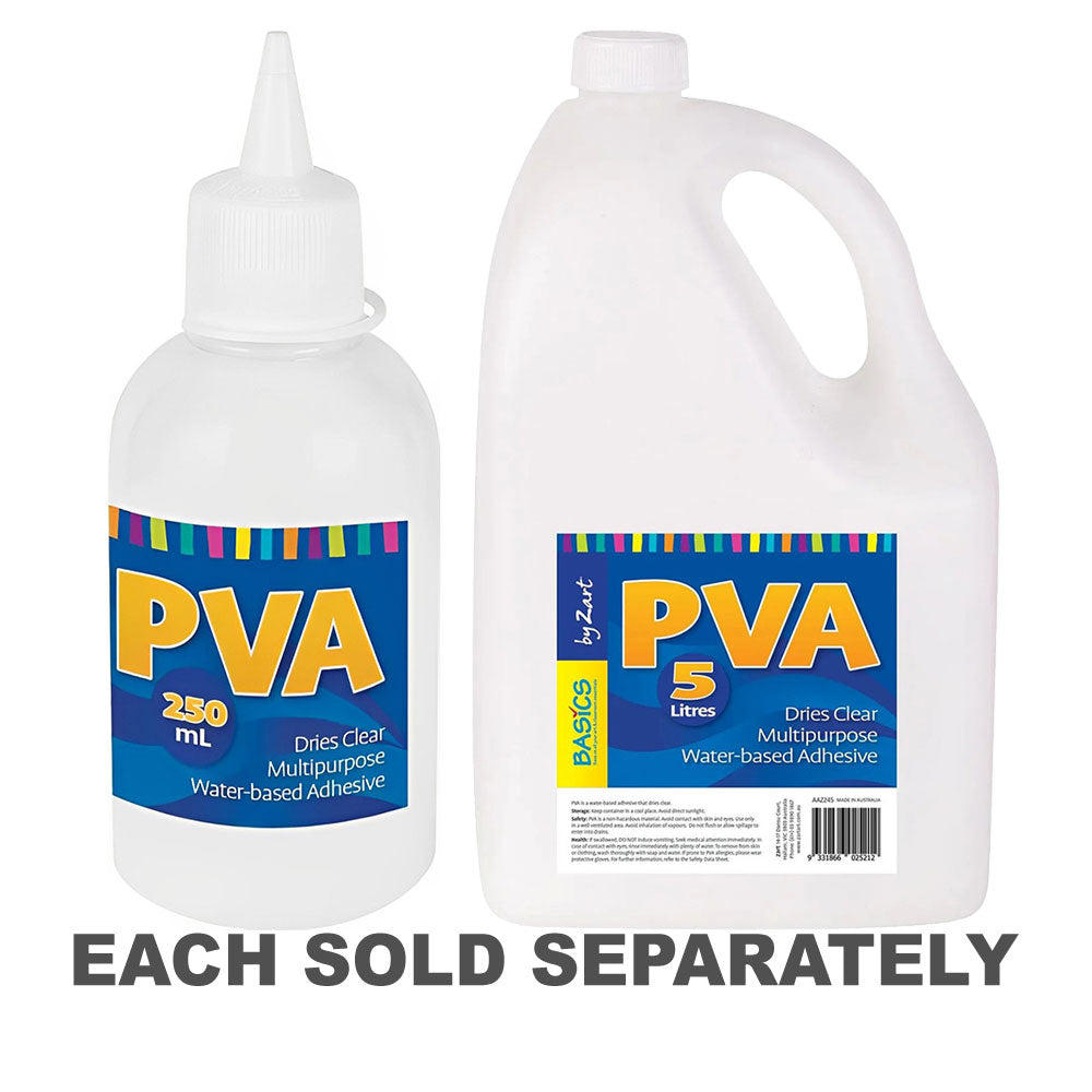 Zart PVA Glue is an Australian made, non-toxic, water based, high-quality, multipurpose glue with excellent adhesion. Acid-free and PH neutral, It is ideal for use on a variety of materials making it the perfect staple in any artroom. Great for general gluing and construction projects including, gluing craft objects to paper or card, papier-mache, card making, journaling, model and puppet making, varnishing applications, wood working, decoupage, textiles and making slime.