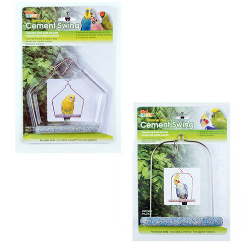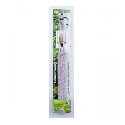 - Progettato per specie di uccelli più piccoli, questa oscillazione di cemento compatto offre un pesce persico accogliente per il riposo e il gioco.
