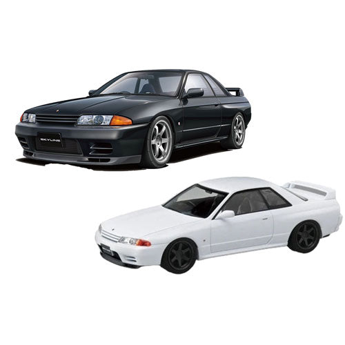 This scale model highlights the R32 Skyline GT-R in a sophisticated Black Pearl Metallic finish, giving it a sleek yet menacing look. The custom wheels add a modern touch to the legendary silhouette, making it an essential piece for enthusiasts of high-performance tuning culture.