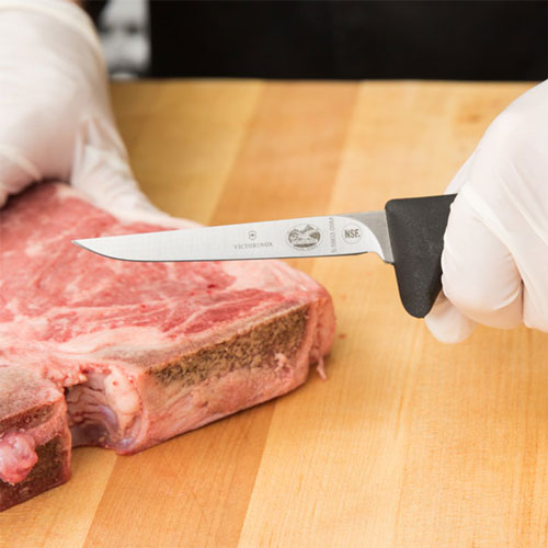 Questo coltello è progettato per tagliare la carne dall'osso senza sprecare carne ed è anche ottimo per tagliare il grasso dalla carne con precisione. La sua lama è progettata per resistere all'uso costante nel tempo senza arrugginitura o corrosi in modo da poter contare su questo coltello nella tua cucina commerciale. Rendi il debonazione del tuo pollame un semplice compito con questo coltello incolpato!