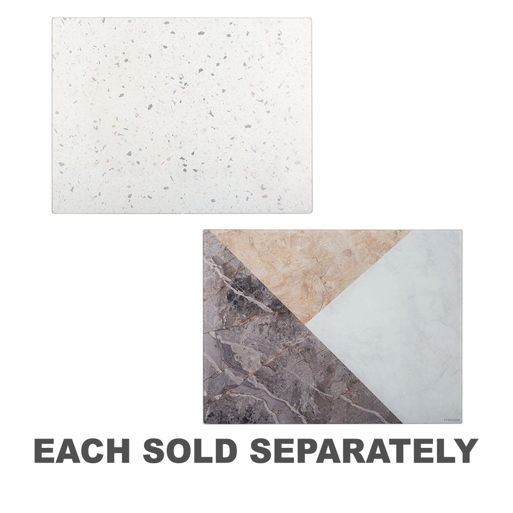 Typhoon Elements Quartz Effect Glass Work Surface Protectorは、食事の準備、作業面を保護し、熱いフライパンと料理を配置するために使用できるため、実用的で多用途です。美しく、人目を引くクォーツプリントで、鏡の斑点が光の中で輝き、天然のクォーツ素材の効果を模倣しています。滑り止めの足は、傷から表面を保護しながら、安定した安全な接触を与えます。強くて耐久性のあるこのプロテクターは、臭気と汚れの耐性であり、最大180°の熱に耐えることができる強化ガラスから作られています。掃除が簡単なボードは、前菜、デザート、または炭火焼きを提供するのに最適で、次のディナーパーティーにエレガントなタッチを追加します。