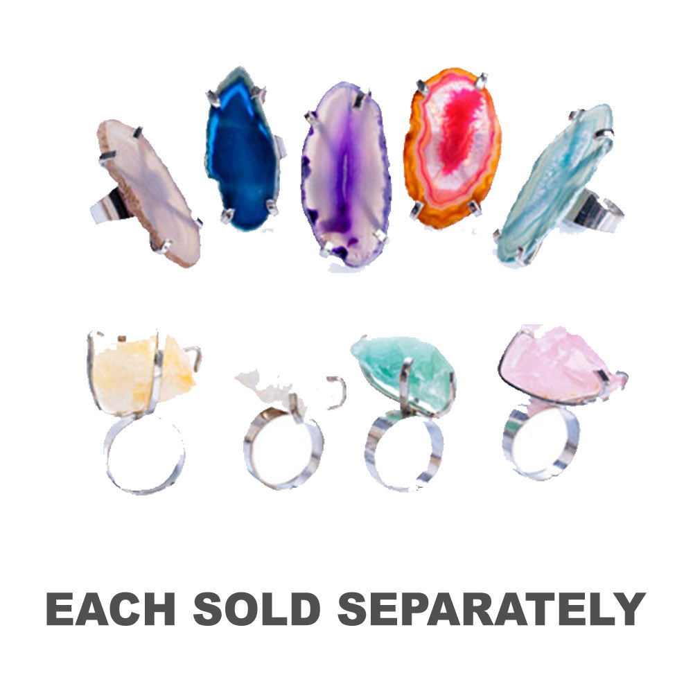 魅惑的なレインボーアゲートリング。 Agateは、そのなだめるような癒しの能力で知られている接地石です。 4つの爪の設定を備えたシルバーリングバンド。 5色から異なる場合があります。