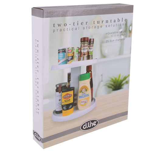 d。調整可能な高さの2層ターンテーブル(白)