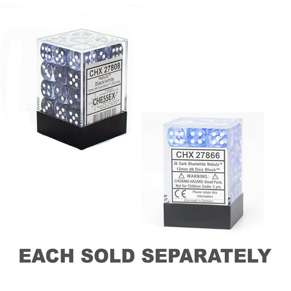 • 星雲12mm D6チェセックスサイコロブロック(36個のサイコロ) - 白いピップと黒