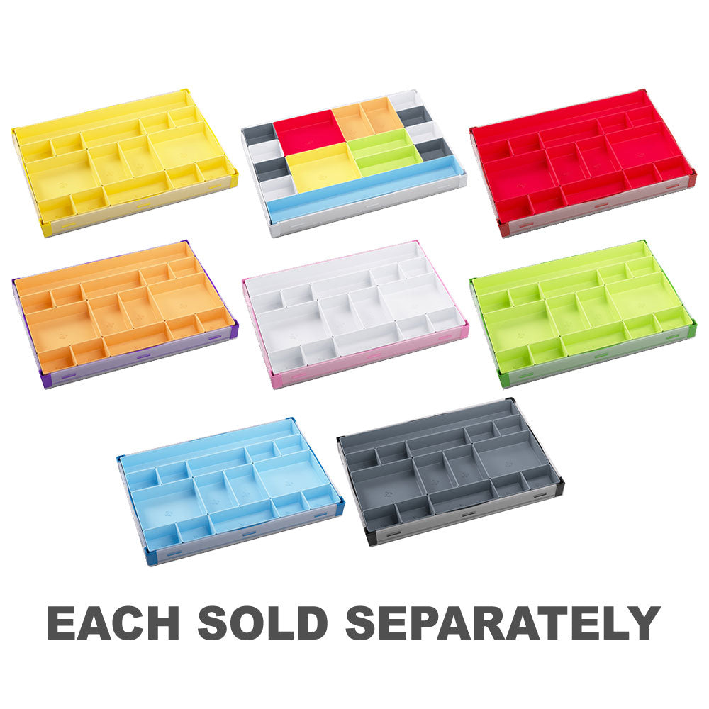 15 removable trays in 5 different sizes
