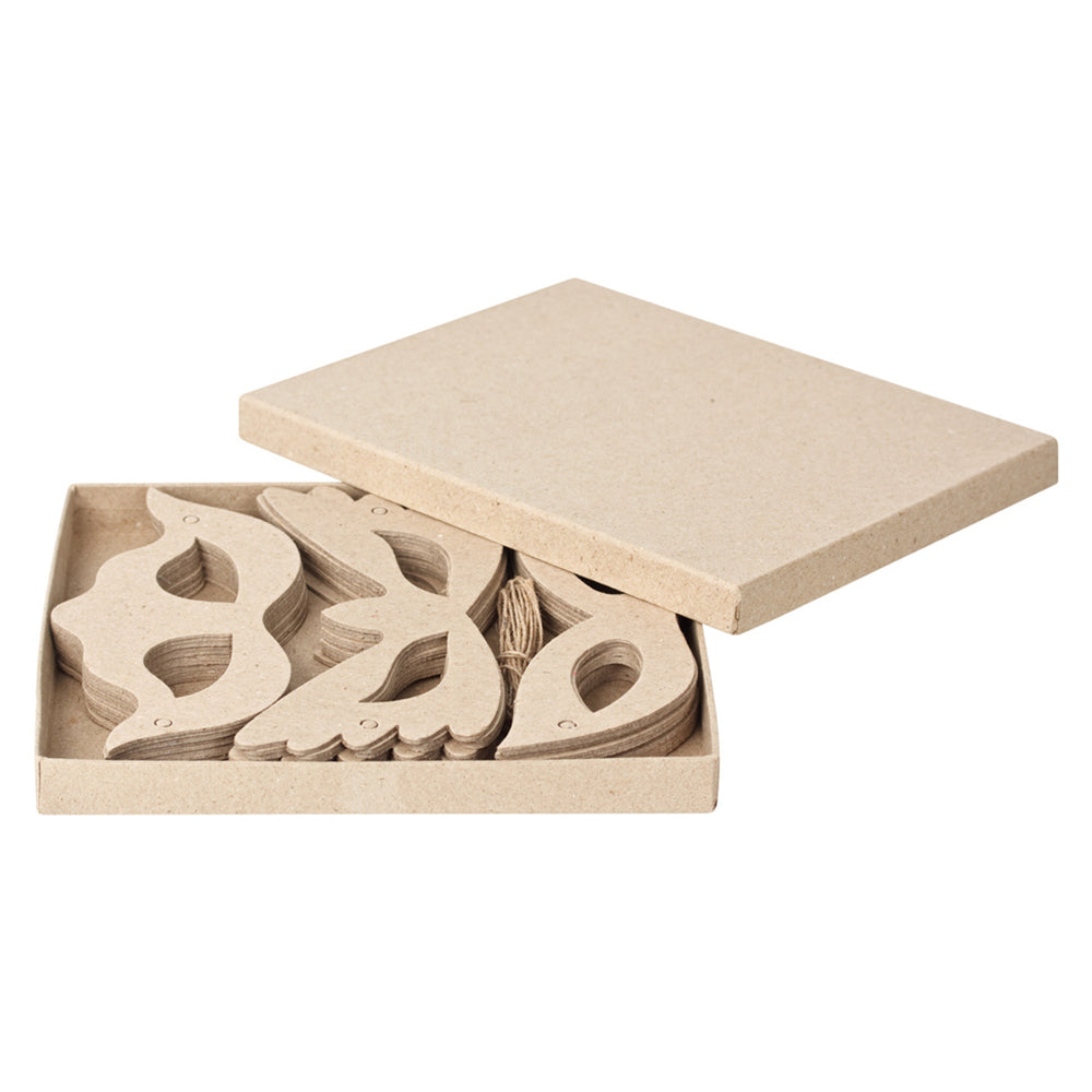 Papier Mache Eye Masks Assorted is a set of three unique, ready-to-decorate papier mache masks that come in different shapes and designs. These masks are perfect for art and craft projects, costume parties, or themed events.