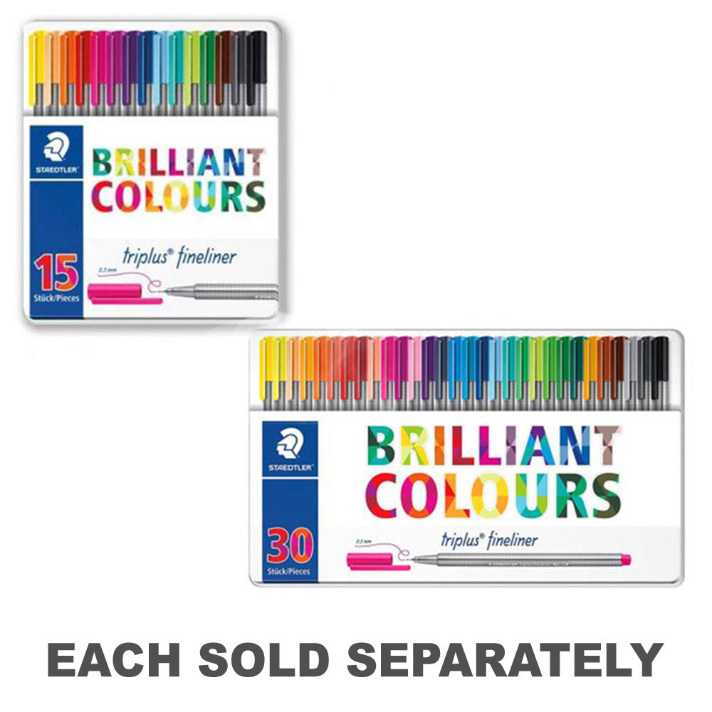 Triplus Fineliner "Brillation Colors"、0.3 mmラインの強化金属先端。メタルボックス。楽な執筆のための三角形の人間工学的樽。乾燥した安全 - 何日も抑えられないままにすることができ、乾燥しません。ほとんどの生地から洗える水ベースのインク。