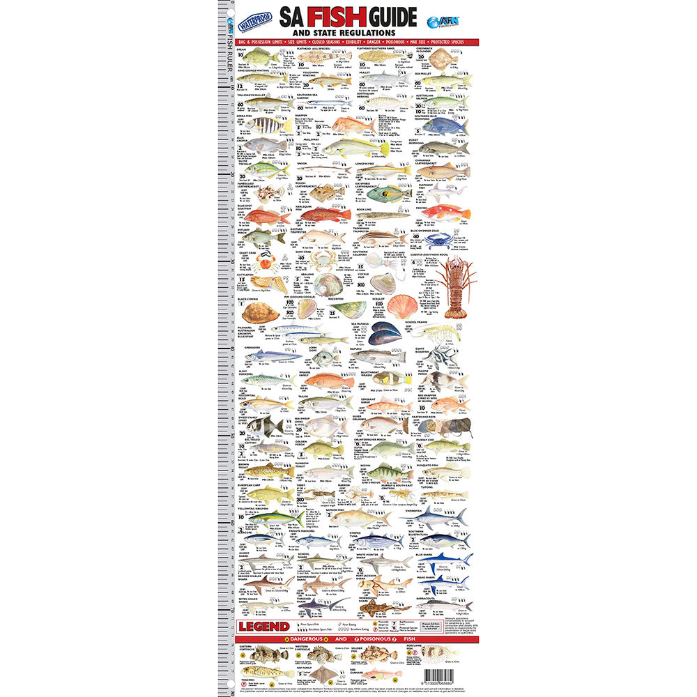 Disse herskerne er vanntette, tåresikre og knusesikre og viser hver lokal fisk som har forskrifter knyttet til den, og selvfølgelig alle de mest populære artene.