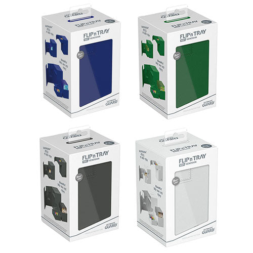 De typische Ultimate Guard Deck Box: een tijdloos monocoleerd ontwerp met sterke magnetische sluiting, kaart- en dobbelstenenbakken voor veilige opslag van uw dek, en een resistent maar glad Xenoskin -oppervlak. Op zoek naar extra veiligheid? Met kamer voor 100 kaarten met dubbele mouwen of 120 kaarten met één mouwen in standaardmaat, heeft de flip'n'tray 100+ het allemaal.