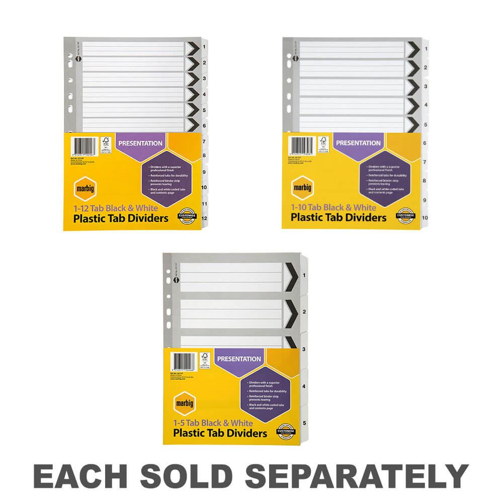Os índices e divisores de Marbig são ideais para uso em todos os arquivos de alavanca e alavanca. Disponível em uma variedade de guias e cores. Organizar seu arquivamento é ainda mais fácil com Marbig!