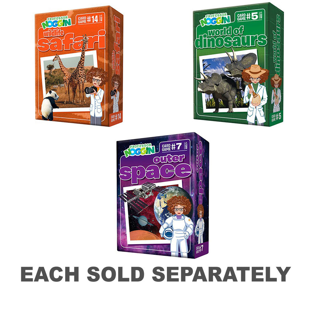 É a edição de 2020 do Professor Noggin com todas as novas fotos! Explore todas as coisas que acontecem no espaço sideral. Aprenda informações fascinantes sobre planetas, luas, naves espaciais, satélites, asteróides e muito mais! Cada um desses jogos de cartas testa o conhecimento dos jogadores de vários tópicos em dois níveis de habilidade. Cada jogo consiste em 30 cartas grandes e resistentes, dados de três números e instruções. Os cartões têm ilustrações de cores ou fotografia retratando um animal ou objeto e dois conjuntos de perguntas de curiosidades por outro. Perguntas fáceis são voltadas para crianças mais novas e pessoas com pouco conhecimento do assunto, enquanto o nível difícil é para aqueles com um pouco mais de conhecimento. Um jogador lança os dados, pega uma carta e faz uma pergunta a outro jogador. Se o jogador acertar a pergunta, ele ou ela poderá mantê -la, mas se eles responderem errado, o leitor diz a todos os jogadores a resposta correta e remonta ao fundo da pilha