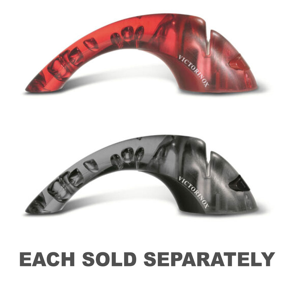 Apontador de cerâmica portátil para todos os tipos de facas de cozinha com ajuste grosseiro de dois estágios. Os profissionais aprimoram as facas com um apontador após cada uso. No entanto, em um ambiente doméstico, um uso da faca é curto o suficiente para não precisar ser afiado com tanta frequência. As facas que você usa geralmente precisam ser afiadas uma vez por mês, por exemplo, com este prático apontador de longa vida.