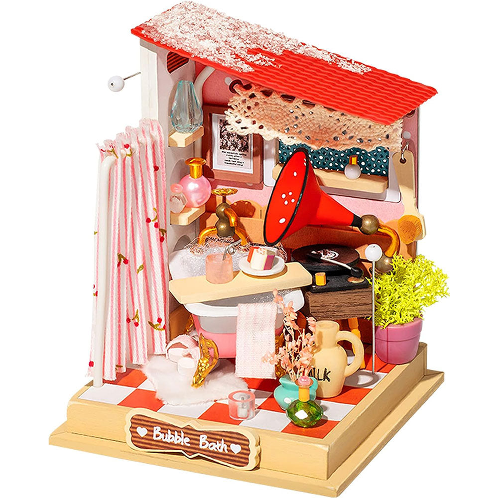 Njut av ett ögonblick av avkoppling med DIY Mini House Bubble Bath Badrumssats. Montera dockhuset och skapa en spa-liknande atmosfär med miniatyrbadtillbehör. Det är ett lugnande och kreativt projekt för självvårdentusiaster.