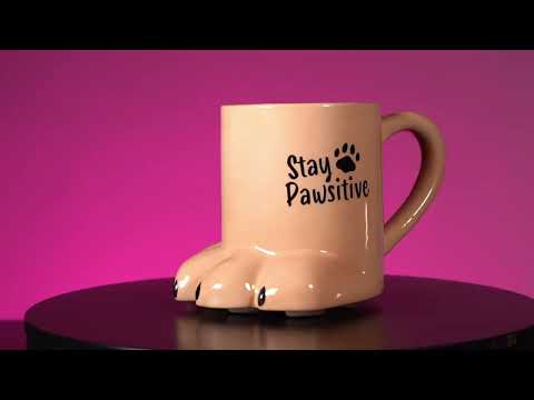 Bedårande 3D -mugg formad som en kattens tass. PURR-FEKT för kattälskaren i ditt liv! Med grå accenter och en punny -fras som läser "Stay Pawsitive".